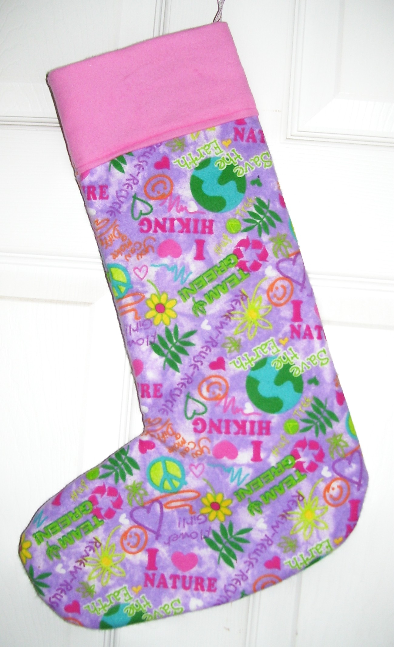 It is made with a save the earth go green cotton flannel print and a solid hot pink flannel.