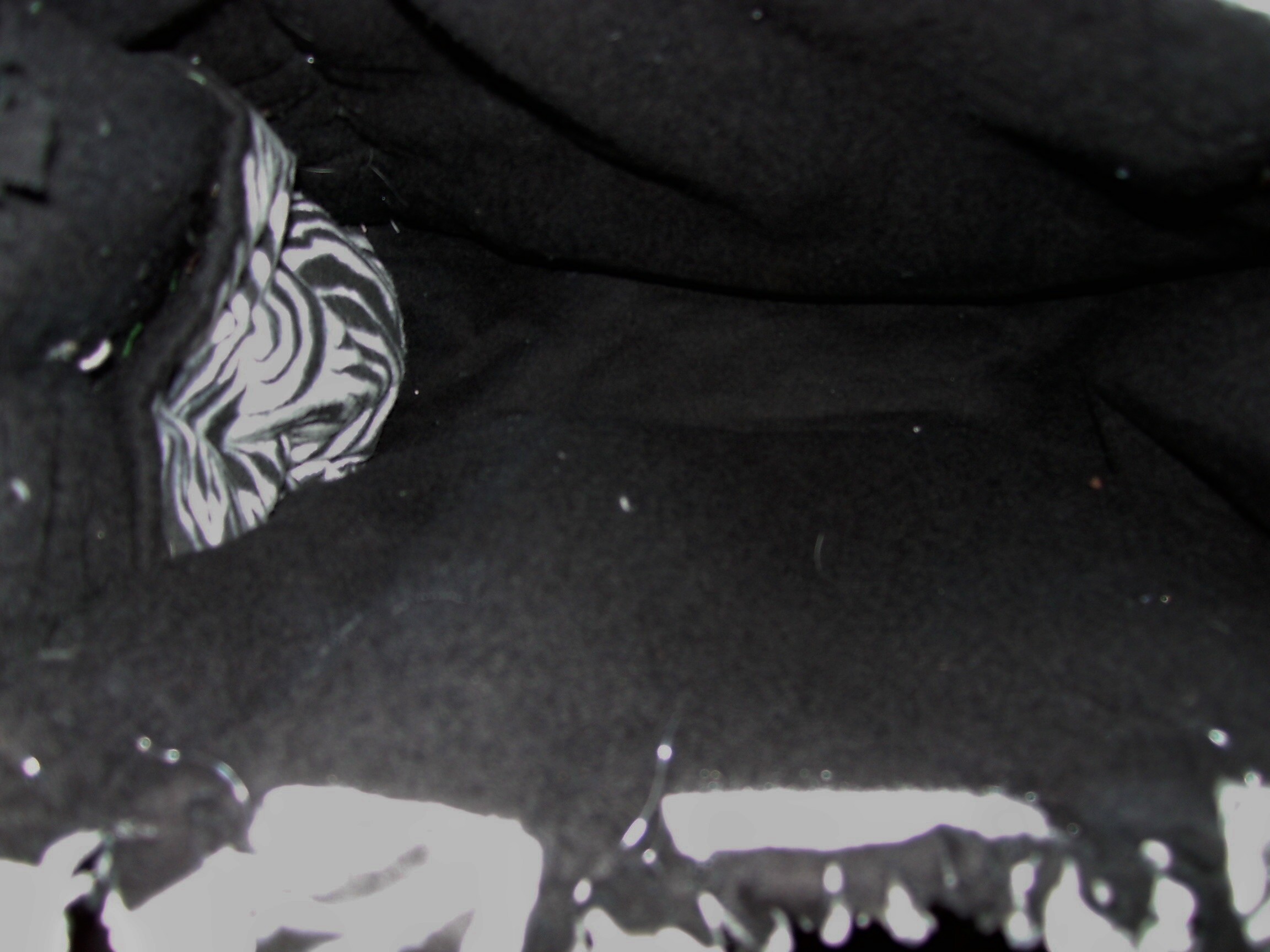 Tote is made with a zebra print flannel and black flannel.