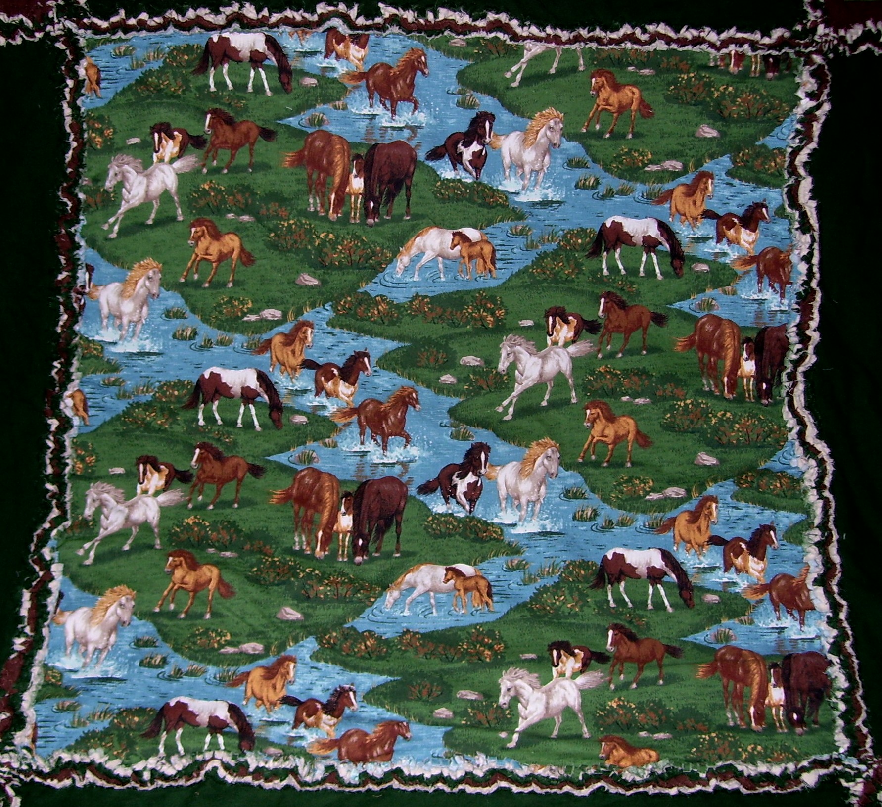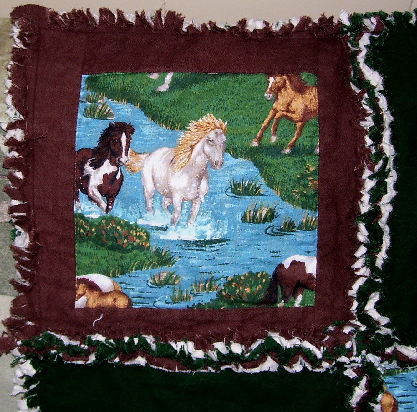 Wild Horses with Chocolate Brown and Dark Green Rag Quilt