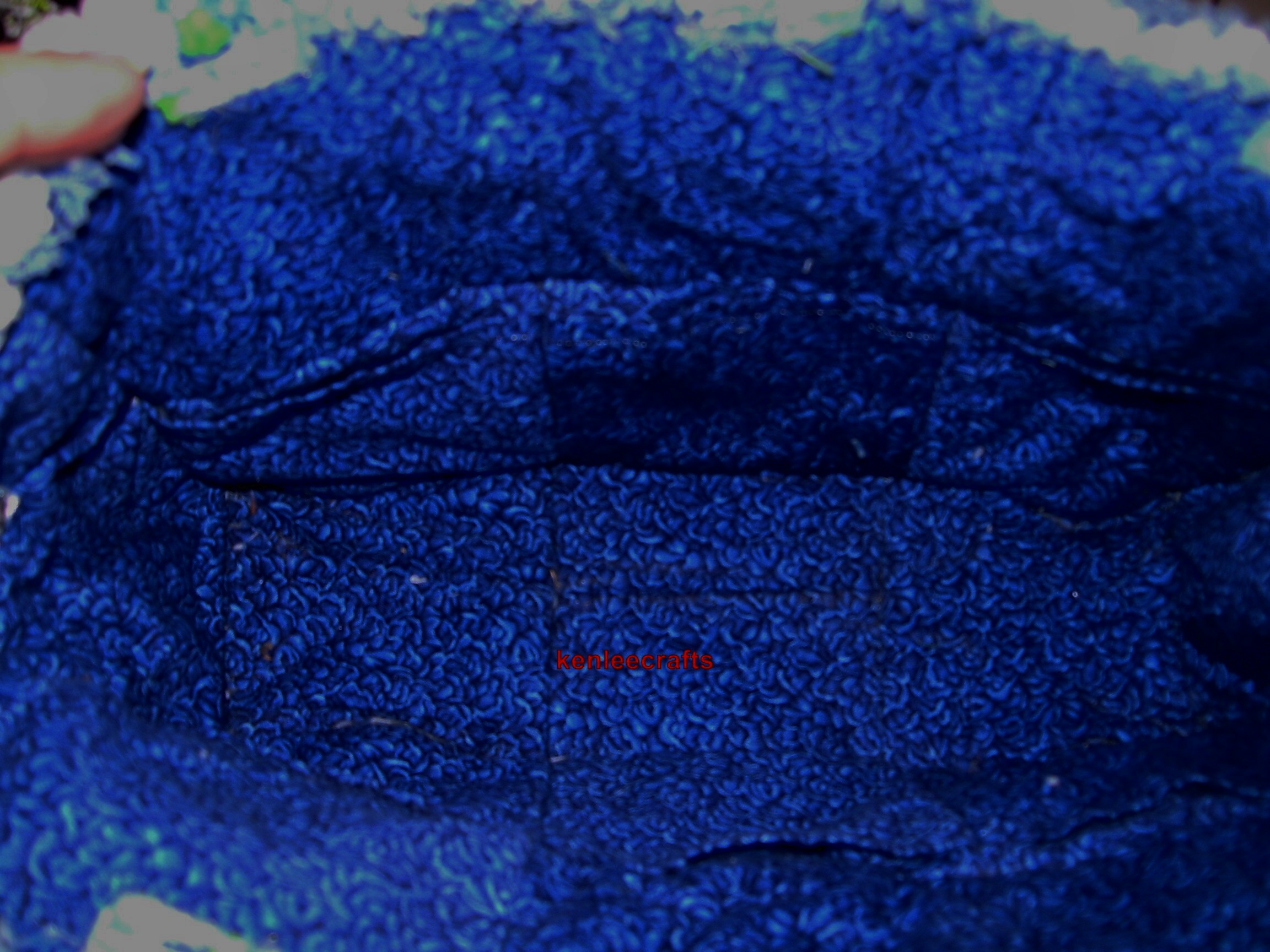 The inside is made with a sark blue cotton blender. There six pockets on the inside that are lined and trimmed.