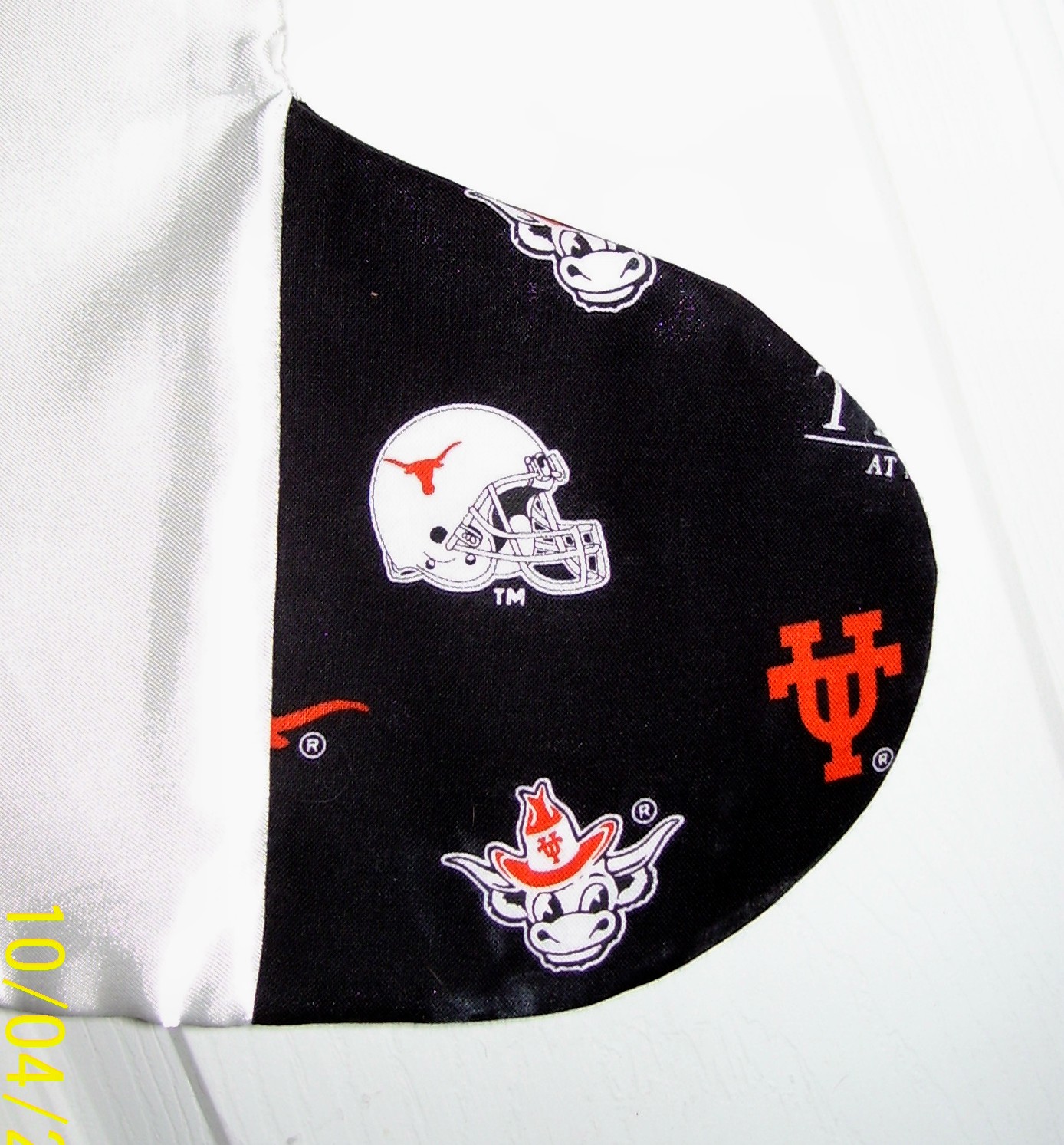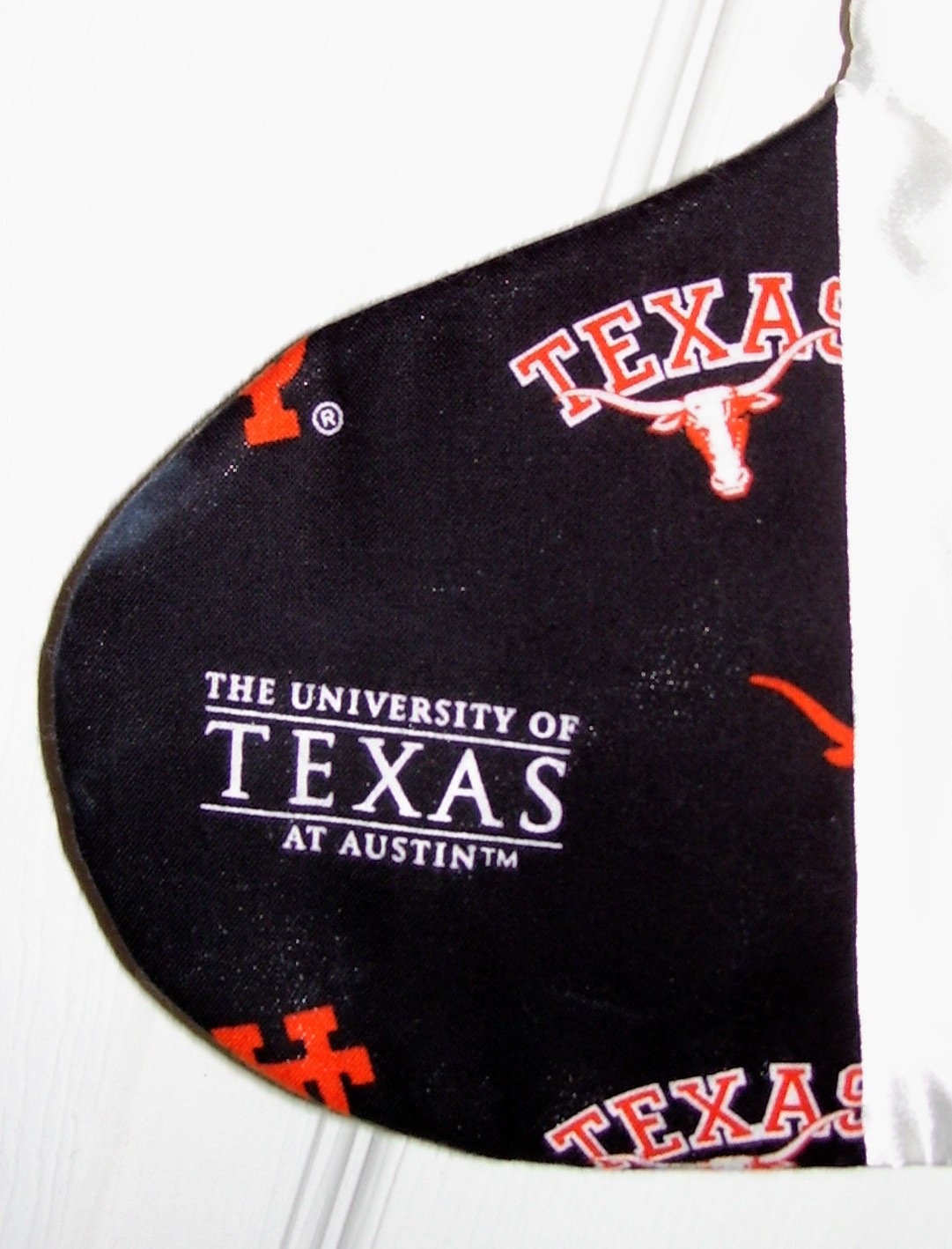 It is made with a Texas Longhorns cotton print and a solid white sateen